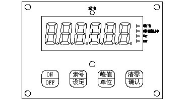 按键从左至右依次为“ON/OFF”、“+”、“-”、“ENTER/ZERO”;上部LCD显示的五位数字为索拉力,单位为、旋紧手轮至钢索顶到限位即显示钢索拉力
