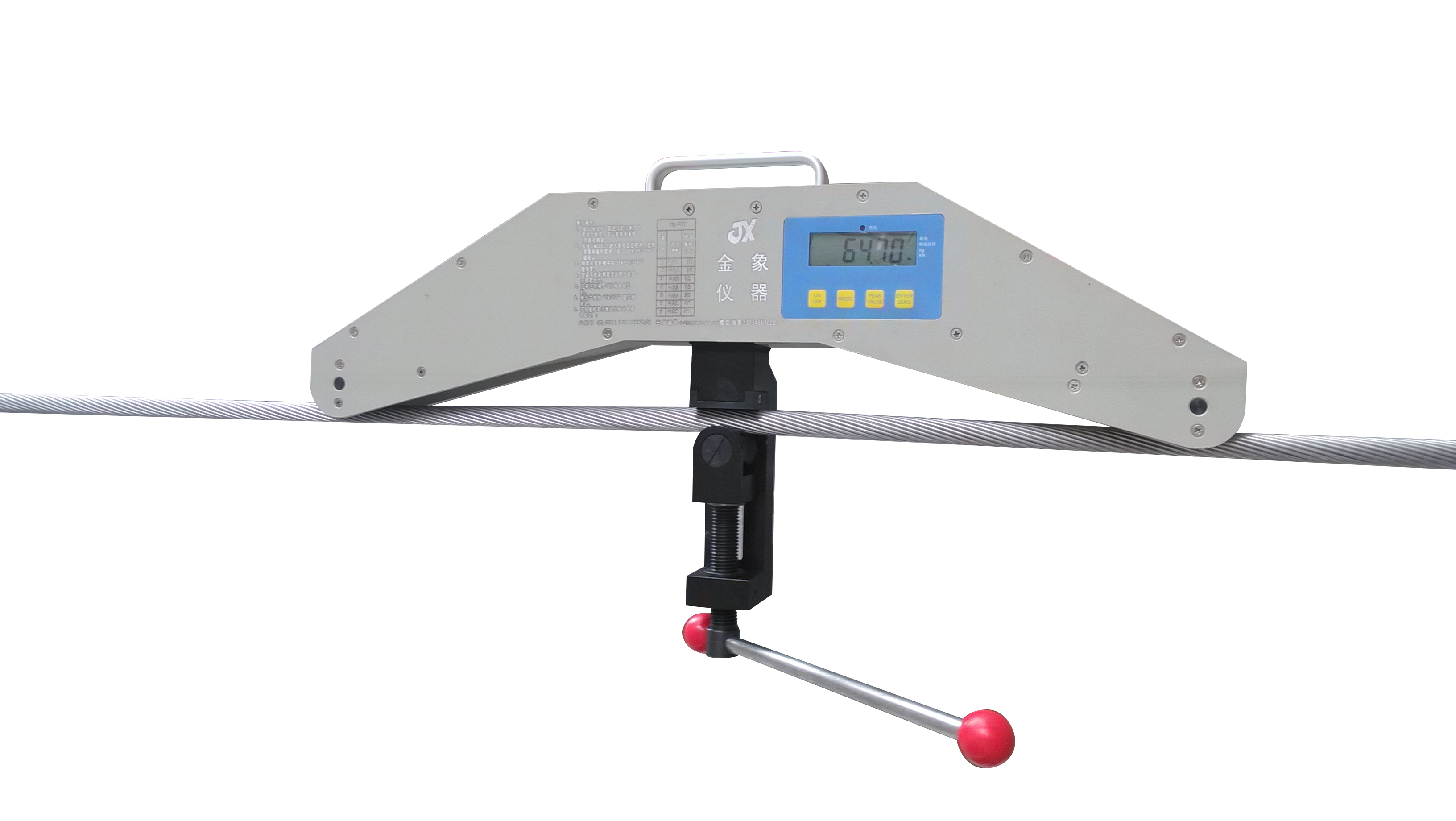 索力检测装置 线索张力测量仪绳索张力测量仪,主要用于已经有张力的情况之下对绳索进行测量,例如:固定的幕墙拉索、绳索、钢丝绳、钢绞线、钢芯铝绞线、辅助的绳索、电气化铁路的接触线及承吊钢索的张力测量等。